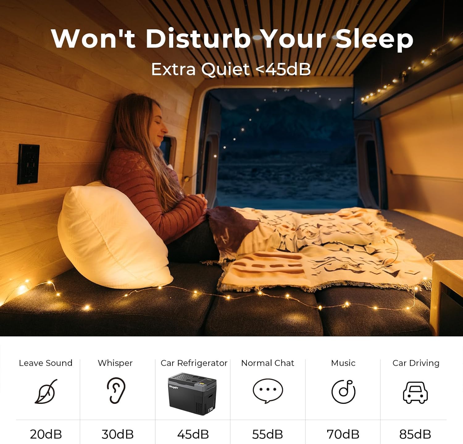 Gracias a su compresor eléctrico eficiente, puede conectarse a 12/24 V CC en vehículos o 110-240 V CA en casa o campamento, brindando flexibilidad y adaptabilidad en cualquier entorno. Su diseño portátil y robusto facilita el transporte, ya sea en RV, campers, autos, camionetas, SUV o barcos, garantizando frescura y seguridad de tus alimentos durante todo el trayecto.