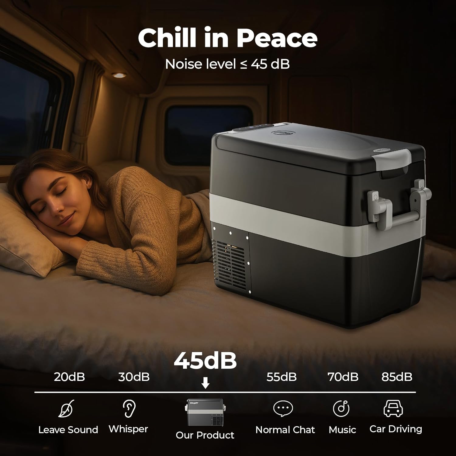 El BougeRV Refrigerador portátil de 12V combina capacidad, portabilidad y versatilidad para mantener tus alimentos y bebidas en óptimas condiciones durante tus aventuras. Con 53 cuartos de galón, ofrece espacio suficiente para almacenar provisiones para toda la familia, ya sea en viajes por carretera, acampadas o excursiones en barco.