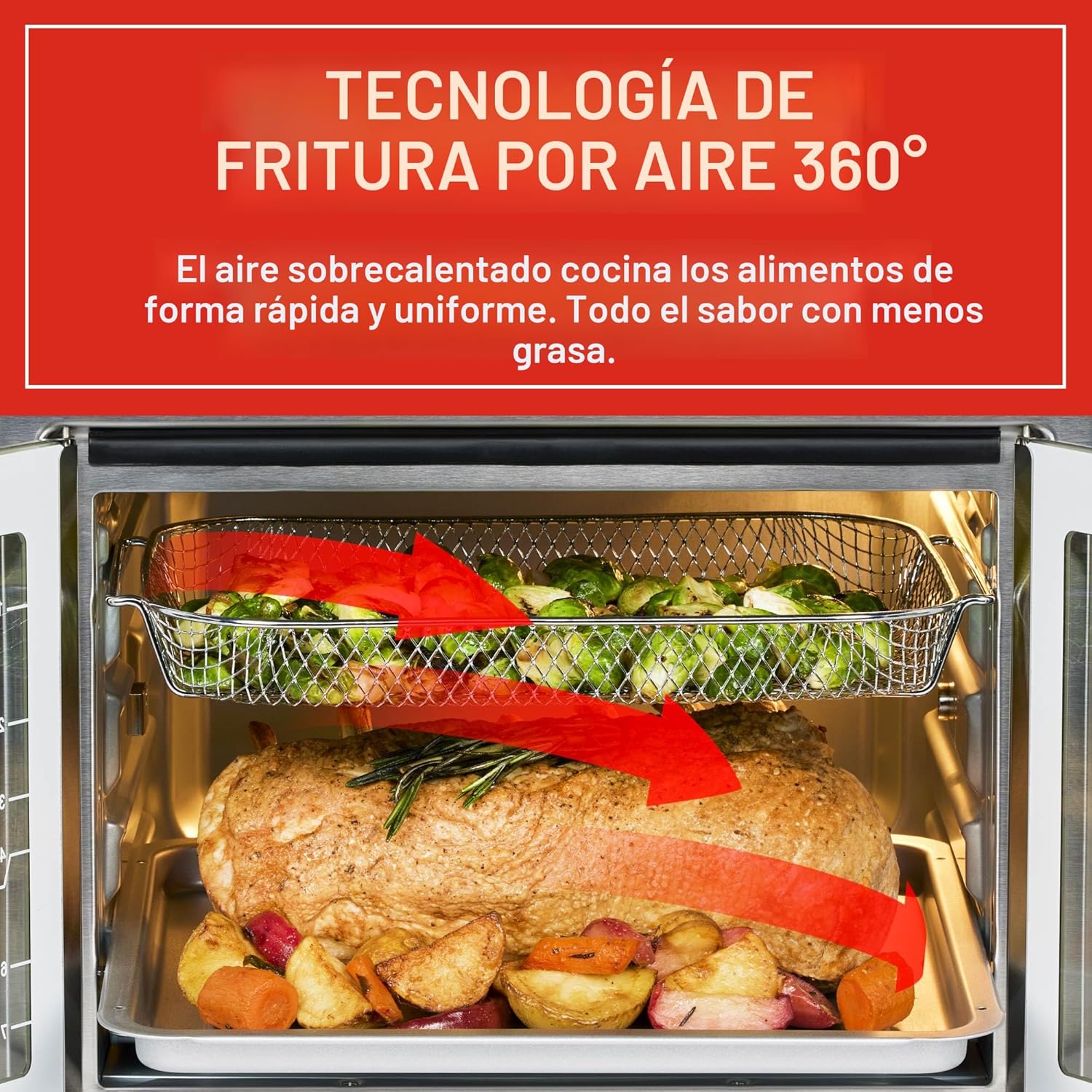 Con su capacidad extragrande de 26 cuartos de galón, podrás cocinar un pavo entero, dos pizzas grandes o varias bandejas de alimentos a la vez. Además, su panel de control intuitivo, los ajustes preestablecidos y los accesorios incluidos facilitan la preparación de recetas diarias o platos especiales con resultados consistentes y deliciosos.