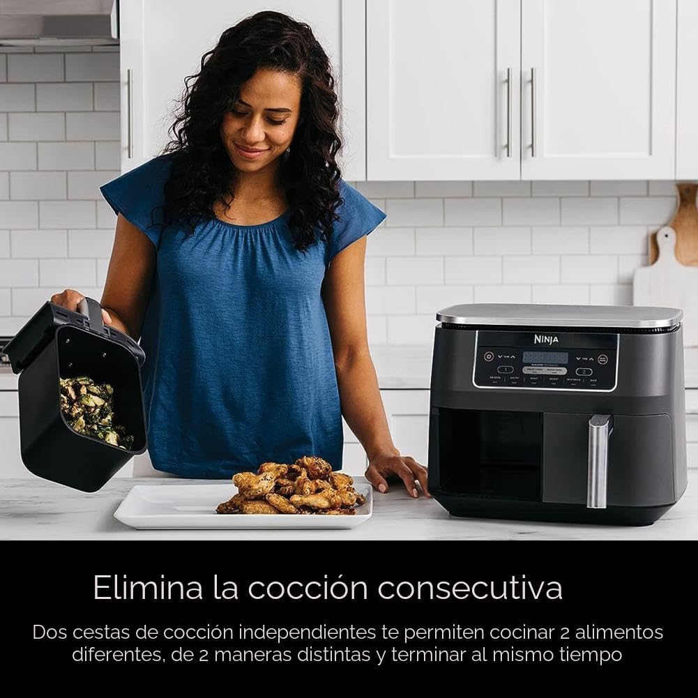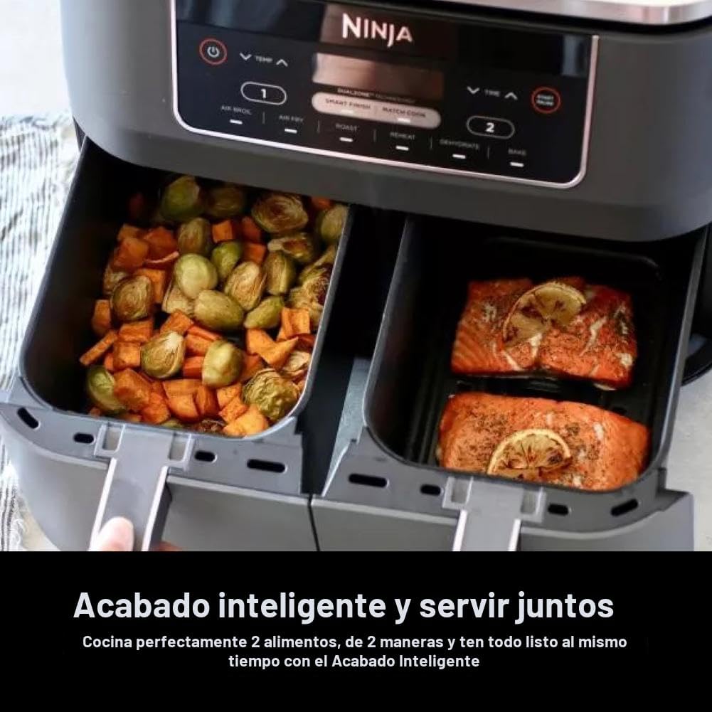 La Ninja DZ201 Foodi DualZone 6 en 1 ofrece dos cestas independientes para cocinar dos platos a la vez. Su tecnología Smart Finish permite que ambas preparaciones terminen al mismo tiempo, garantizando comidas rápidas, crujientes y perfectamente cocinadas.
