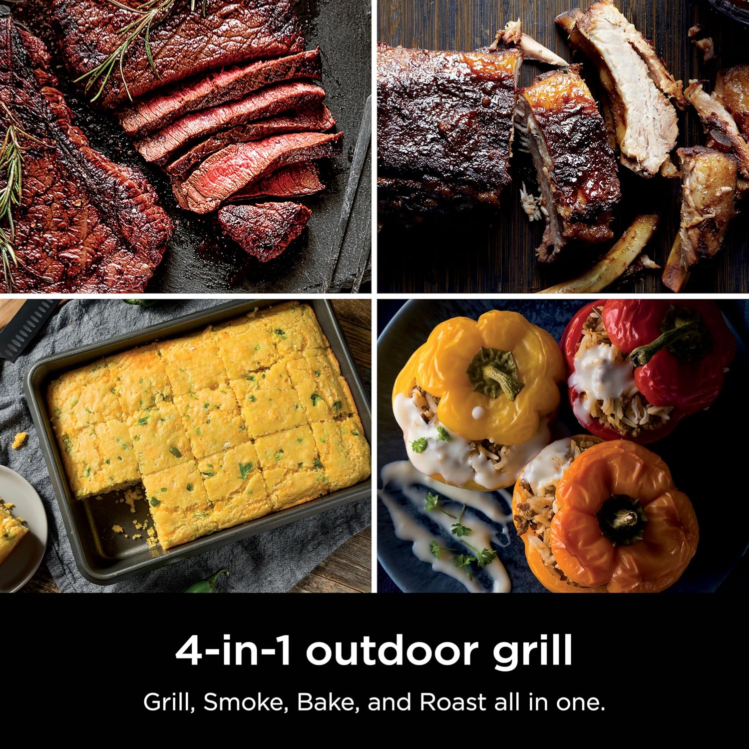 Ninja Woodfire – Parrilla y ahumador para exteriores, funcionalidad 4 en 1, parrilla, ahumar, hornear, asar, sabores auténticos de fuego de madera, calor eléctrico, OG301