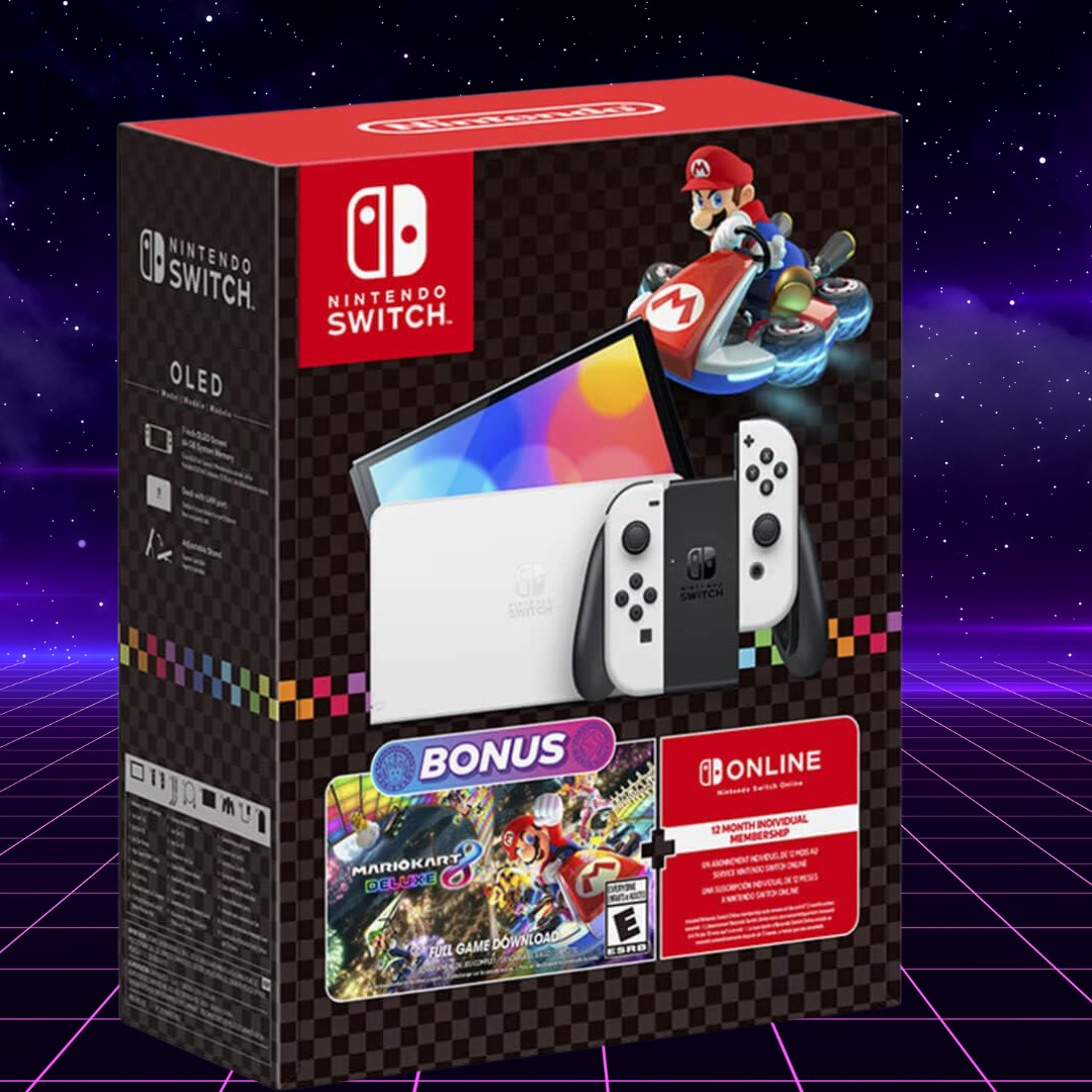 Este bundle incluye la consola Nintendo Switch Modelo OLED, los Joy-Con, el dock, cables necesarios y el juego Mario Kart™ 8 Deluxe para que puedas empezar a jugar inmediatamente. Los Joy-Con desmontables permiten partidas multijugador, ya sea en el modo cooperativo local o en línea, brindando horas de entretenimiento para toda la familia.
